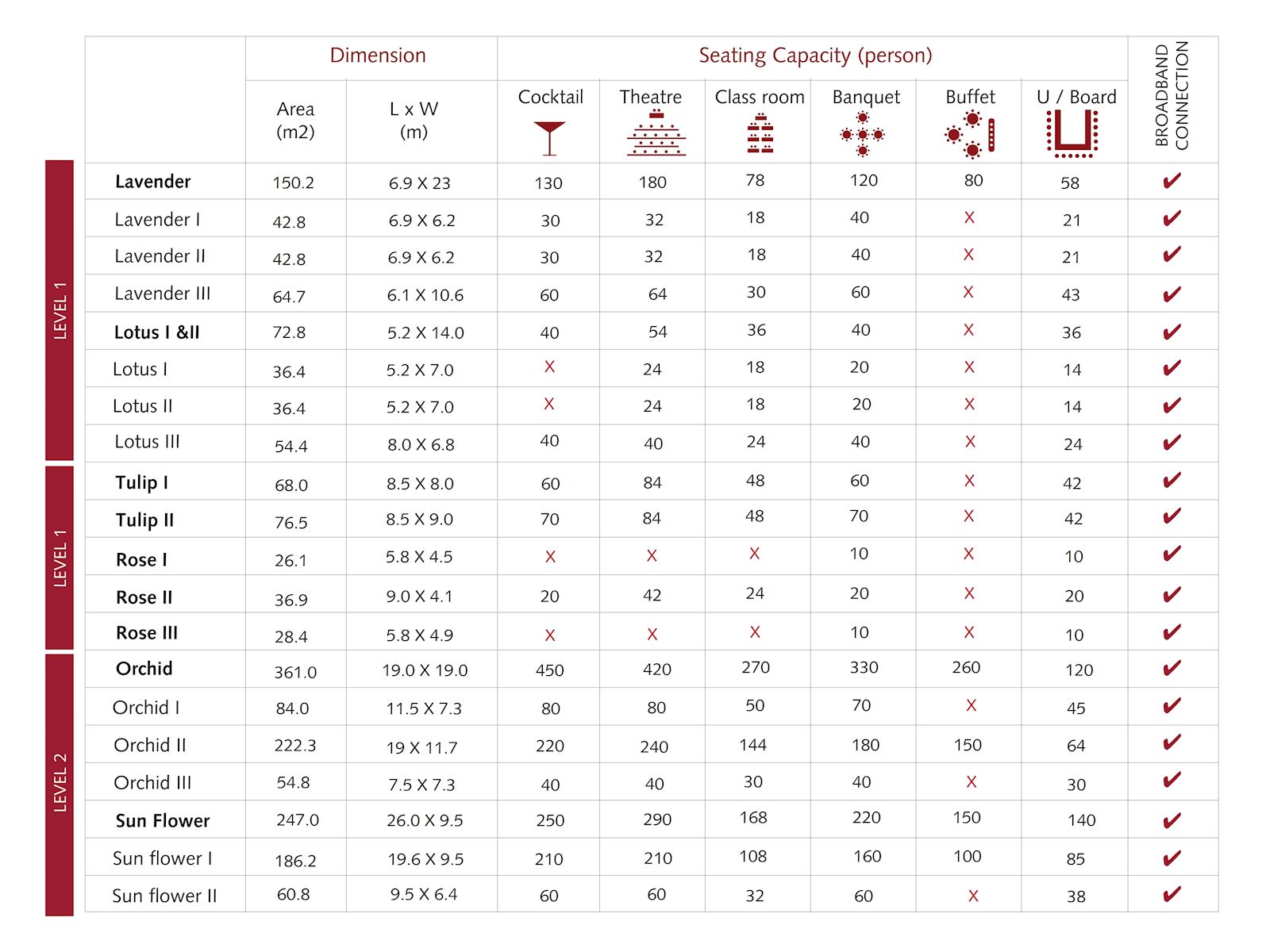 Orchid room features from 60m² to 220m² of space with the capacity up to 200 guests. This versatile space is perfect for hosting large corporate gatherings, weddings or special celebrations with elegant decor and professional service to ensure a memorable experience